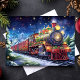 Celebre la magia de la temporada con esta vibrante tarjeta de Navidades con un tren festivo lleno de luces y decoraciones de colores. Perfecto para los aficionados al tren o para los amantes de la nostalgia de las vacaciones, esta carta aporta calidez y alegría a la temporada.
