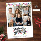 Navidades festivos alumbran 3 Fotos Temporadas Saludos Tarjeta de Navidad. Comparta los GREETINGS de SEASON con esta célebre tarjeta de felicitación de fotos de la temporada navideña de Navidades con tres fotos y una tipografía moderna de guion caligráfico acentuada con brillantes luces multicolores de Navidades acuáticos. ASISTENCIA: Para obtener ayuda con la modificación del diseño, póngase en contacto con el diseñador ANTES DE PEDERSE a través de la pestaña MENSAJE de chat Zazzle que aparece a continuación o envíe un correo electrónico a makeitaboutyoustore@gmail.com.