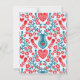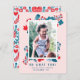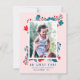 Patrón floral barato escandinavo en azul, rojo y rosa rubor. ¡Añade tu propia foto para una postal única y colorida para Navidades! Los colores de fondo (azul claro sobre el respaldo con motivos de reno y rosa rubor delante) pueden cambiarse.