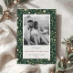 Vintage Classic de dos caras, tarjetas de Navidades de fotografía familiares que presentan un patrón de follaje de invierno de sabores oscuros con fotos familiares personalizadas y mensajes de vacaciones.