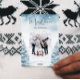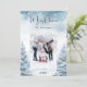 Bosque de invierno acuático como fondo. Personaliza y agrega tu apellido y una foto. Superposición de nieve. Feliz Navidad escrito con un guión a la moda a mano.