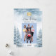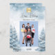 Bosque de invierno acuático como fondo. Personalice y agregue su logotipo comercial, nombre y foto. Felices vacaciones escritas con un moderno guión de estilo a mano. Atrás: agrega tu mensaje.