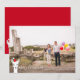 Una tarjeta plana con foto de Navidades en festividad que muestra tu foto y una llama personalizado, usando un sombrero de Santa que mira desde el lado inferior izquierdo de la tarjeta. La foto es una plantilla para cambiarla por la tuya.