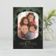 Esta deliciosa tarjeta de Navidades muestra una foto vertical dentro de un marco redondeado, adornada con un borde de mistletoe. El fondo es negro. El reverso le ofrece texto personalizado para que añada su propio mensaje personal, o utilice el que se muestra.