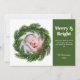 Este diseño presenta una corona de abeto con una foto de su elección. Esta tarjeta de saludo es la elección perfecta para difundir alegría a estos Navidades. Personalízalo sin esfuerzo.