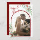 Tarjeta de vacaciones para Moda minimalista elegante Merry y Navidades de fotografía casados Mistletoe Newlyweds Arch - Una carta elegante y festiva para Navidades fotográficos con color de agua verde invierno en colores clásicos de vacaciones rojas y verdes. Perfecto para recién casados que envían sus primeras tarjetas de Navidad juntas a la familia y amigos. Personalice agregando su propia foto boda. Todo el texto es editable.