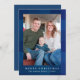 Sencilla y festiva, una foto colorida tarjeta navideña lucida presenta un rústico patrón de manto azul y la clásica tipografía navideña de los cerezos en el frente, y una sólida espalda azul de invierno. Por favor, vea esta colección de temporada para colores vibrantes adicionales de este saludo de vacaciones.
