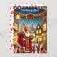 Tarjeta de vacaciones "Gelukkig Kerstfeest" para Navidades holandeses de época. San Nicolás distribuyendo regalos a los niños.