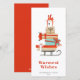 Modernos Navidades ilustrados de mediados de siglo, llenos de imponentes regalos, tarjeta de vacaciones. Características de la tarjeta, líneas de texto de plantilla para su saludo y nombre con respaldo de color rojo retro sólido.