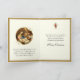 Con una hermosa imagen vintage de la Natividad con la Virgen María, San José y el Niño Jesús sobre un rosario de oro. Adentro está la misma imagen con un versículo de la Escritura de Navidades. Se pueden modificar todo el texto y las fuentes.