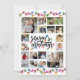 Navidades Ilustra Las Temporadas Saludos 16 Fotos Tarjeta De Festividad. Comparte 16 recuerdos de fotos con familiares y amigos esta temporada de vacaciones de Navidades con esta moderna y festiva tarjeta de saludo con fotos que incluye una plantilla de collage fácil de subir, un título de GREETINGS de SEASON en moda caligrafía tipografía acentuada con brillantes luces de Navidades multicolor en la parte delantera y tu mensaje de personalizado o resumen de año en revisión o carta de Navidades en la parte trasera. ASISTENCIA: Para obtener ayuda con la modificación del diseño, póngase en contacto con el diseñador ANTES DE PEDERSE a través de la pestaña MENSAJE de chat Zazzle que aparece a continuación o envíe un correo electrónico a makeitaboutyoustore@gmail.com.