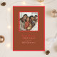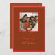 Esta moderna y elegante tarjeta de vacaciones cuenta con un fondo rojo-marrón profundo con un marco rojo brillante y un marcador de foto cuadrado en la mitad superior, perfecto para su foto familiar personalizada. Debajo, el mensaje dice "Feliz Navidad desde los Carteles", con cada línea en un color diferente que va desde el rojo brillante a rosa pálido. La paleta de colores cálidos es especialmente atractiva para las familias negras o afroamericanas, ya que ofrece una hermosa alternativa a las típicas tarjetas de vacaciones beige o de tonos claros. Una tarjeta de vacaciones pensada, inclusiva y contemporánea - ¡personalizable completo para tu celebración única!