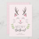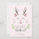 Ilustracion vector lindo de un gato con cuernos sonriendo. Debajo del gatito dice "Navidades Meowy". Tarjeta rosa divertida y alegre para que las mujeres o la familia envíen a sus seres queridos a Navidades, ya sea que sean dueños de un gato o simplemente les encantan los diseños graciosos.