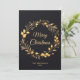 Este exquisito Navidad elegante moderno Festive Unique Black Gold Holiday Card cuenta con un fondo negro y lujosos acentos dorados, lo que lo convierte en la elección perfecta para aquellos que buscan un toque moderno y de gama alta a sus saludos de vacaciones. Diseñada con la máxima atención a los detalles, nuestra tarjeta de Navidades encarna el espíritu de la temporada, entregando un mensaje festivo de una manera verdaderamente única y sofisticada. La combinación de elementos de diseño contemporáneo y Navidades festivos intemporales lo convierte en el lugar ideal para aquellos que buscan un toque fresco y elegante sobre los tradicionales temas de Navidad. Ya sea que se lo envíe a amigos, familiares o socios de negocios, esta tarjeta de Navidades de lujo es el epítome de estilo y alegría de vacaciones.