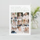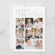 Tarjeta fotográfica navideña moderna con "Feliz Navidad" mostrada en la parte superior del diseño con letras a la moda con fondo blanco. A continuación se muestra un collage de 9 fotos en un diseño de cuadrícula. Personalice la tarjeta de Navidades multifotográficos con su nombre de familia. La tarjeta se invierte para mostrar un fondo verde menta con puntos blancos sutiles (nieve).