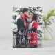 Envíe vítores de vacaciones con esta moderna tarjeta de Navidades planos con un diseño simple con las palabras "Feliz Navidad" en un elegante y delgado guión blanco, junto con su nombre familiar sobre su foto vertical favorita. La parte trasera tiene un patrón rojo hueco.