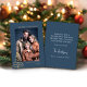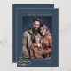Sencilla y elegante foto personalizado "Feliz Navidad" tarjeta de navidades con minimalista texto moderno de oro en un elegante fondo azul moda. La foto y el texto pueden ser fácilmente personalizados para un diseño tan único como tu familia especial! agrega saludos de temporada o vacaciones felices, La imagen mostrada es para propósitos de ilustracion solamente para ser reemplazada con tu propia foto. #navidades #holidaycard #moderna #family #gold #blue