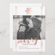 Moderno tarjeta de fotos de las vacaciones navideñas de Feliz Navidad en Relieve metalizado blanco y rosa de imitación de oro. Esta elegante y elegante tarjeta fotográfica presenta un fondo blanco, falsos acentos de Relieve metalizado dorado rosa, tipografía moderna y marcador de posición para la foto de su familia.