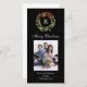 Tarjeta fotográfica de monograma clásica... Elegancia de buen gusto para un retrato tradicional de Navidades. Usar con cualquier foto, orientación horizontal o vertical. Este fondo negro oscuro y moderno es el escenario perfecto para un gráfico pintado de una elegante corona roja y verde, con bayas rojas, hojas y un arco de cinta roja sinuoso. Incluir un monograma de una sola letra inicial en el interior de la corona circular redonda. Una manera muy majestuosa y orgullosa de mostrar la primera carta de tu apellido, mientras se incluye una foto familiar para compartir con la familia y la gente a la que le encanta recibir actualizaciones de cómo se ven todos estos días.