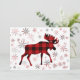 Tarjeta Festiva Navidades Moose platillos rojos copos de nieve