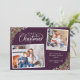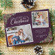 Esta elegante tarjeta de Navidad morada morada oscura está enmarcada en 2 esquinas con manchas acuáticas de pino verde, conos de pino y bayas huecas. La tarjeta de vacaciones cuenta con 2 plantillas de fotos, con la elegancia añadida de la caligrafía de escritura clásica. En la parte trasera hay una textura de color morado oscuro. Consulte la colección para ver muchos productos que coincidan, o póngase en contacto conmigo a través de Zazzle Chat si desea productos adicionales que coincidan con otros colores.