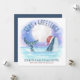 La tarjeta de Navidades de humor náutico presenta una ballena acuarela con un sombrero de Santa que nada en el mar bajo una luna mágica y estrellas con luces de cuerda decorando su cola. Los saludos "Seas & Greetings" y "Wishing you a whale of a good Navidades", junto con el nombre pueden ser personalizados. Arte por KL Stock