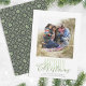 Patrón de copo de nieve de inspiración nórdica verde con fondo gris. Un patrón elegante para vacaciones y Navidades. Esta sencilla tarjeta fotográfica navideña cuenta con un sangrado completo con un borde blanco. un moderno y moderno saludo navideño encaja 1. Este diseño presenta a Navidades fotografía moderna, sencilla y elegante, una fotografía familiar, guión de tipografía verde minimalista, caligrafía de moda, lindo, suntuoso patrón de copos de nieve de una casa de campo, tarjetas de fotos de vacaciones grises y verdes, estilo de diseño clásico de vacaciones, patrones de impresión tradicional de invierno, una sola foto feliz Navidad arte de laura lacina