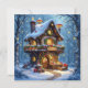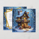 Una tarjeta de Navidades dulces y caprichosos con un lindo tesoro de hadas que es el Taller de Santa en un bosque encantado. En la parte trasera puedes añadir tu propio mensaje y nombres de vacaciones.