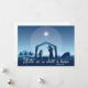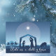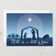 Este bello dibujo azul de la escena de la natividad es una magnífica tarjeta de Navidades religiosos para una familia devota. Para nosotros nace un niño. Envíen bendiciones de vacaciones con estas tarjetas de una iglesia cristiana.