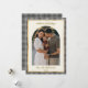 Tarjeta Festiva Navidades retro Black Gold Plaid Arch Happy