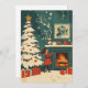 Tarjeta Festiva Navidades retro Escenario Chica de chimenea
