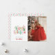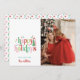 Esta lúgubre tarjeta de fotos de Navidad tiene un texto de colores brillantes que dice "Felices Fiestas" con una marca de diamante en la parte de atrás. Los colores son rosa, rojo, verde y azul claro.
