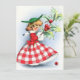 Navidades retro vintage con vestido de cuadros rojos con la tarjeta de vacaciones de bayas holly. Una bonita tarjeta de los años 50 que es perfecta para tu colección o para enviarte a tu familia y amigos para las vacaciones.