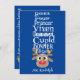 Envíe unos divertidos y lindos saludos de vacaciones con esta lista de renos de Santa y un personalizado de Rudolph. Personalizado de reno de nariz roja con una lista de todos los otros renos en blanco tipo divertido en un divertido fondo azul. Sencillo, divertido, lindo y en consonancia con el niño en su interior durante las vacaciones. En la parte trasera guarda "Felices Fiestas y todo lo mejor para el nuevo año" o agrega tu propio saludo y mensaje general o deja en blanco. Rótulo con tu apellido o tu propio texto o deja en blanco. Si necesita ayuda para personalizar este producto o desea que le ayude a transferir el diseño a otro producto, envíeme un correo electrónico y le ayudaré. designsbykatz@gmail.com