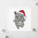 El rinoceronte en Navidades con luces de hadas. Animales divertidos con regalos y nieve para las vacaciones. Un saludo de Navidades dulces. Los rinocerontes son lindos animales y perfectos para los Navidades.
