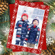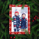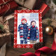 Esta alegre tarjeta fotográfica navideña, vacaciones para Navidades, elegante diseño de copos de nieve rojos con una plantilla fotográfica, y una tipografía con un guión de broche, una sencilla tarjeta fotográfica minimalista, roja y blanca, clásica tradicional, moderna de invierno, bonita y caprichosa tarjeta fotográfica de vacaciones