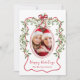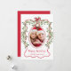 Tarjeta Festiva Navidades Rojo Wavy Frame Bow Greenery Photo