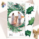 Tarjeta fotográfica festiva de Navidades verdes y rojos