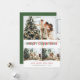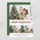Tarjetas fotográficas de Feliz Navidad, de color rojo y verde personalizado, con un collage de fotos con un título decorativo y Navidades con luces en el frente y fondo verde con caída de nieve en la parte posterior. Personaliza fácilmente estas tarjetas de fotos de Navidad rojas y verdes con tus imágenes, un nombre familiar y el año.
