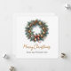 Esta célebre tarjeta plana con temática de corona presenta un saludo de "Feliz Navidad" con escritura dorada, complementado con un mensaje de vacaciones al revés. Se personaliza fácilmente con su firma y sirve como plantilla editable para adaptarse a sus necesidades específicas.