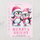 Tarjeta Festiva Navidades rosados merry & Bright Penguin Ice Skate