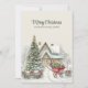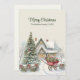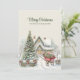 Envíe sus cálidos deseos de vacaciones con esta rústica tarjeta de Navidades de dos lados con una cabaña nevada, un árbol decorado y un encantador vagón rojo lleno de regalos. El estilo vintage pintado a mano refleja la magia de una época de vacaciones tradicional. Personalizar tanto la parte delantera como la trasera con tu propio mensaje o nombre de familia para crear un keepsake único. Perfecto para difundir alegría a sus seres queridos cercanos y lejanos.