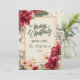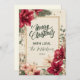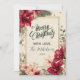 Un diseño festivo con audaces flores rojas amaryllis, suave vegetación eucalipto y acentos dorados para un elegante toque rústico. Personalice su nombre familiar para compartir sus cálidos deseos y Navidades atemporales.