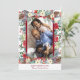 Tarjeta Festiva Navidades rústico floral familia foto rojo burdeos