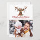 Cute Rustic Navidades Deer Ornaments Tarjeta de fotos de vacaciones con un adorable ciervo adornado con ornamentos y flores rústicas de vacaciones y ramas de pino. ¡Añade fácilmente tu propia foto y detalles para una tarjeta de Navidades querida!