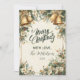 Celebre la magia de la temporada con este diseño rústico de Navidades de campanas doradas. Con su vegetación clásica de pino, sus flores blancas y sus brillantes campanas, combina el encanto vintage con la elegancia festiva. Una manera atemporal de enviar cálidos deseos de vacaciones.