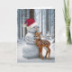 Una escena caprichosa en un bosque cubierto de nieve, cuenta con un simpático muñeco de nieve con la nariz de zanahoria y el gorra de Santa Claus, con un venado joven acurrucada en su contra. Se puede cambiar todo el texto interno.