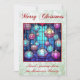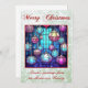 Vidrio brillante y luminoso de diseño de Navidades multicolores y decoración bauble en un marco rojo. Con un fondo purpurina verde pálido y "Feliz Navidad". Puede cambiar el saludo personal del personalizable al final del diseño a su propio mensaje.