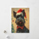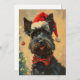 "Captura el espíritu festivo con el diseño de la tarjeta de nuestros Navidades que incluye un adorable Territorio Escocés sobre un encantador sombrero Santa. Esta entrañable imagen seguramente calentará los corazones y traerá alegría a sus saludos festivos".