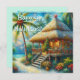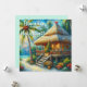 Tarjeta Festiva Navidades Tropical Hut Palm Tree Beach Lights